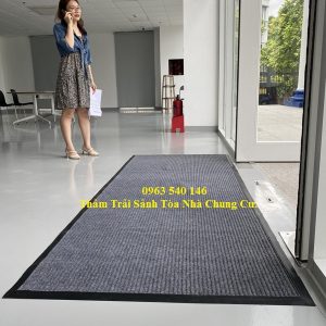 Thảm chùi chân sảnh chung cư là sản phẩm rất phổ biến hiện nay, nhờ khả năng thấm hút nước, bụi bẩn rất tốt độ bền rất cao, và làm theo kích thước yêu cầu của quý khách của dòng thảm đế cao su , mặt thảm sợi nỉ. Thảm trải cửa chung cư rất hữu ích vào những ngày mưa bụi, nhờ đó mà không gian phía bên trong luôn luôn sạch sẽ, khô giáo. Ngoài ra tấm thảm chùi chân còn được trải tại các sảnh tòa nhà, sảnh văn phòng, sảnh siêu thị, sảnh trung tâm thương mại, sảnh showroom…
