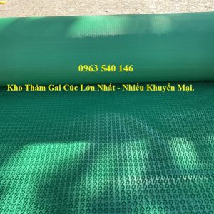 Thảm nhựa gai cúc màu xanh có kích thước 0,7m x 10m và 0,9m x 10m, thảm rất bền, làm tấm thảm chùi chân dạng gai nhựa rất bền. Dòng sản phẩm này có rất nhiều công dụng như dùng để chống trơn trượt tại bể bơi, khu vực bán hải sản tại các siêu thị, nhà hàng, quán ăn hoặc có thể làm thảm chùi chân nhựa gai đặt tại các sảnh tòa nhà văn phòng, chung cư, cửa ra vào công ty trong các khu công nghiệp.