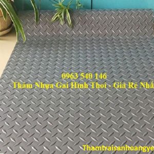 Thảm nhựa vân lá hình thoi chống trơn trượt, sử dụng tấm thảm vân lá để trải nhà xưởng, kho hàng, hành lang, bếp ăn công nghiệp tại cả công ty, xí nghiệp, trường học, bể bơi, nhà hàng, trải nền gạch nơi để xe máy không bị xước sàn, lối đi trong các xe chở khách… Tấm thảm được thiết kế với kích thước 1,2m x 15m các tông màu chủ đạo như màu xanh lá, đỏ, ghi xám. Chất liệu được làm từ 100% pvc cao cấp, mềm dẻo, độ bền rất cao.